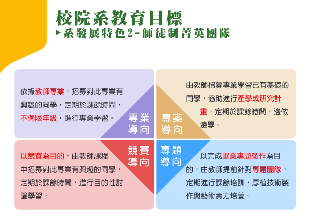 菁英競賽訓練方式,培養學生參加全國與國際競賽。本系已經連續多年於國內外設計競賽中獲得佳績!
