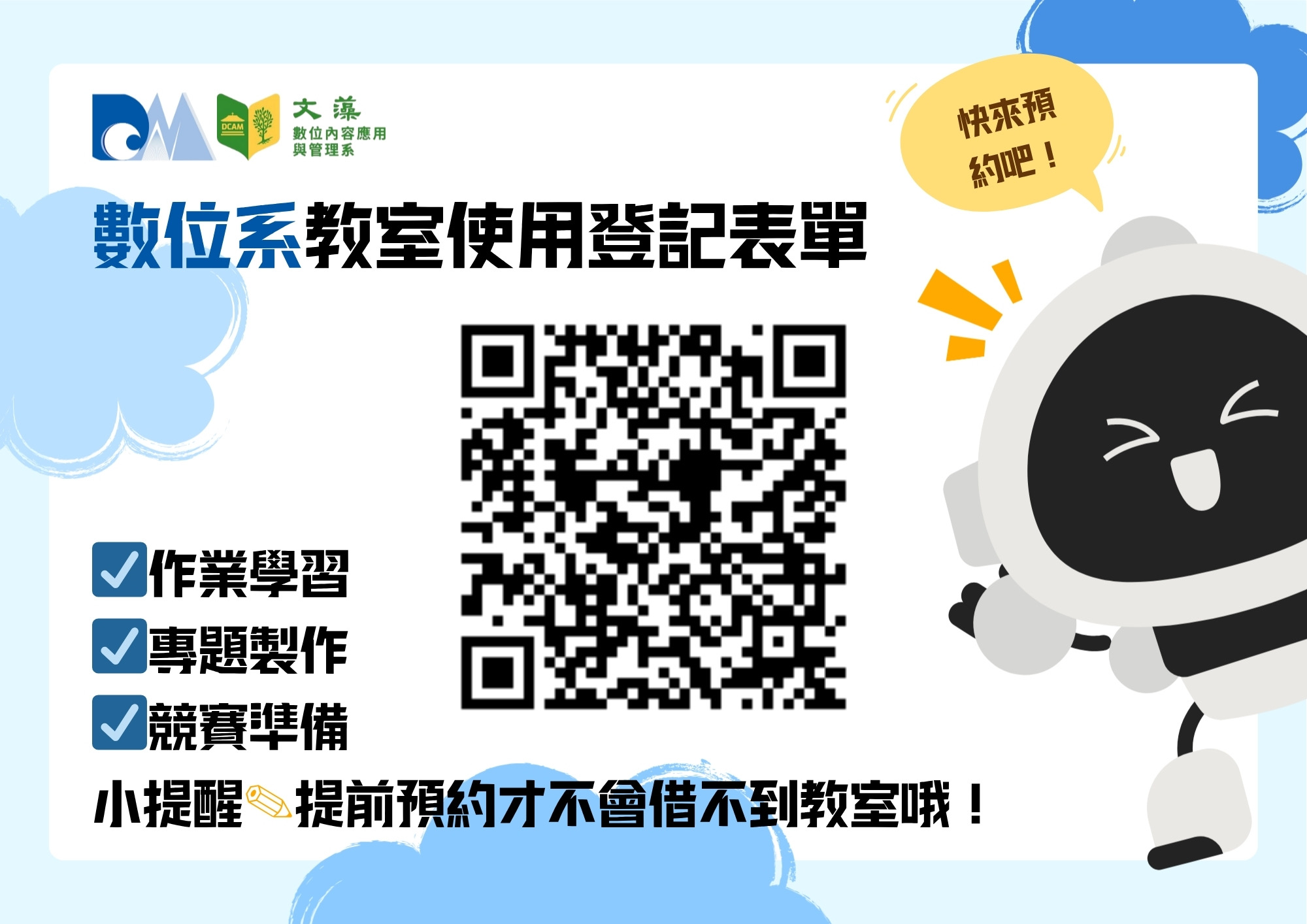 教室使用登記表單連結:https://forms.gle/tCQobfdY6fZvnSXv7